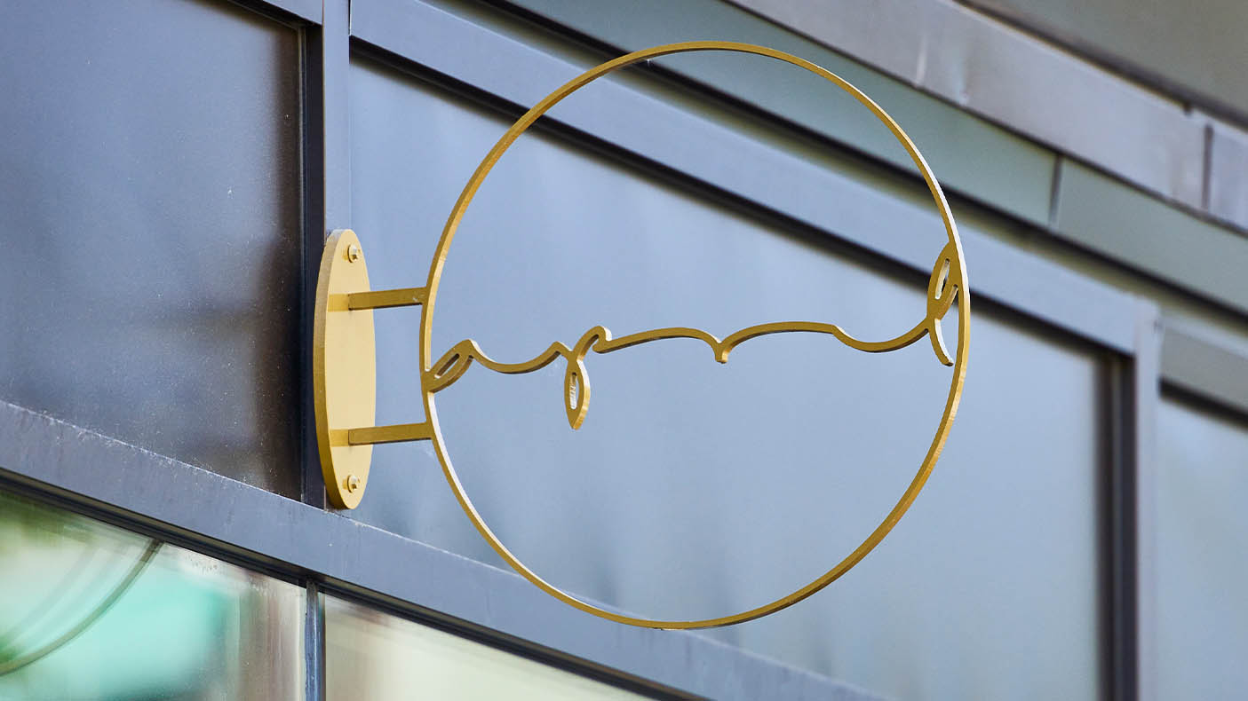 Effektfull obelyst flaggskylt. April heter det fina bageriet!
